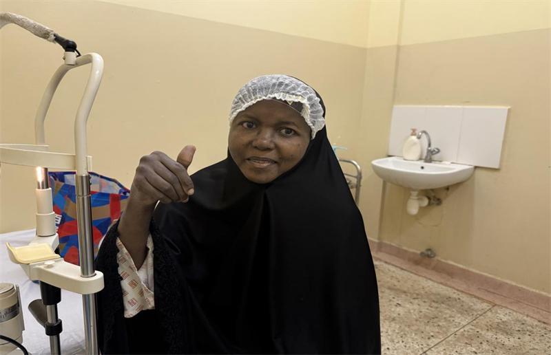 患者马利德·赛德为中国医生竖起大拇指。中国援桑医疗队供图